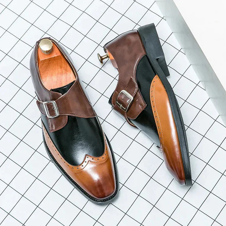 Bruno Lombardo Monk Strap Brogue Leather Shoes
